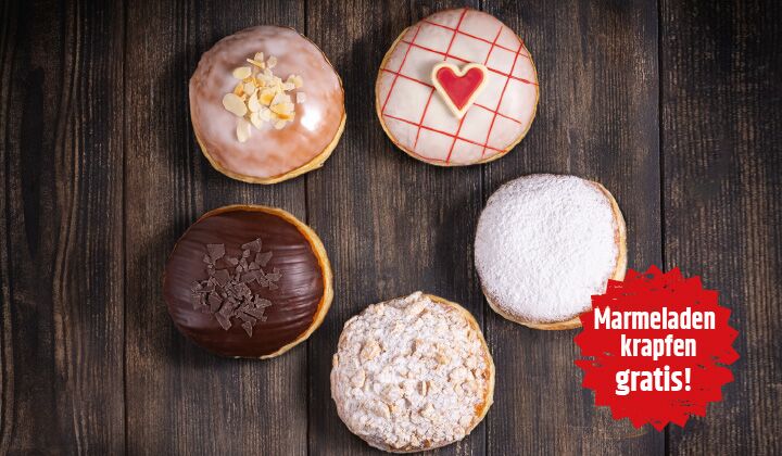 und erhalten Sie einen Marmeladenkrapfen gratis!